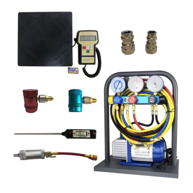Комплект станция для заправки автокондиционеров KraftWell KRW134ALC, 5..Перейти к описанию