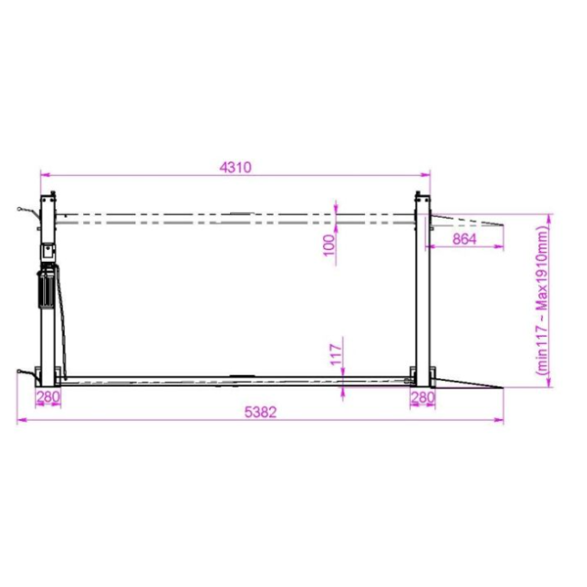 | Максимальная высота подъема, мм | 1910 |