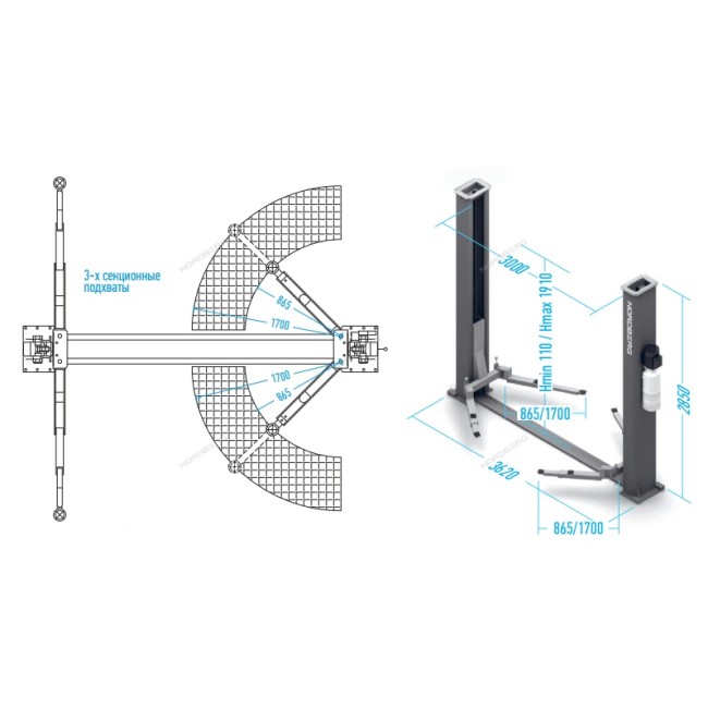 - Высота подъемника - 2840 мм