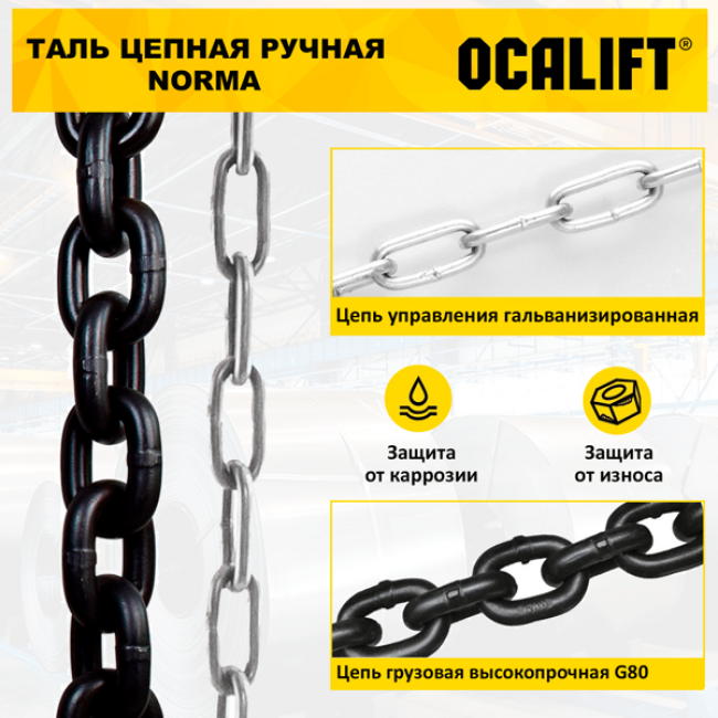 | Управление | ручное, рабочий поднимает или опускает груз с помощью цепи управления |