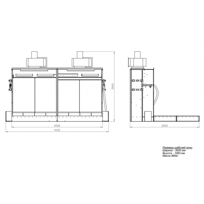 | Размер рабочей зоны ДхГ, мм | 3920х2000 |