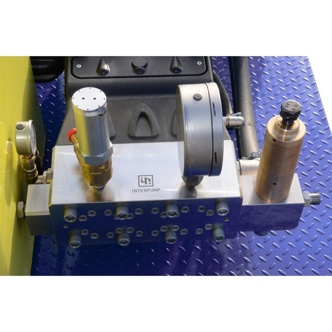 | Насос высокого давления | Горизонтальный или вертикальный, кривошипно-шатунный, с блоком из нержавеющей стали и встроенной системой охлаждения плунжеров (выполнены из карбида вольфрама), с системой охлаждения масла в картере насоса с фильтром и манометром, PRATISSOLI (концерн INTERPUMP, Италия)* |